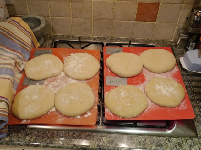 As you can see from the ingredients column there was considerable faff to sort the ratios into manageable quantities, if we’d stuck to the original recipes we’d have ended up with enough dough for 32 pizzas, which even by our gluttonous standards seemed ambitious. This way we had just over 500g of dough from each recipe so we could make two 250g pizzas.